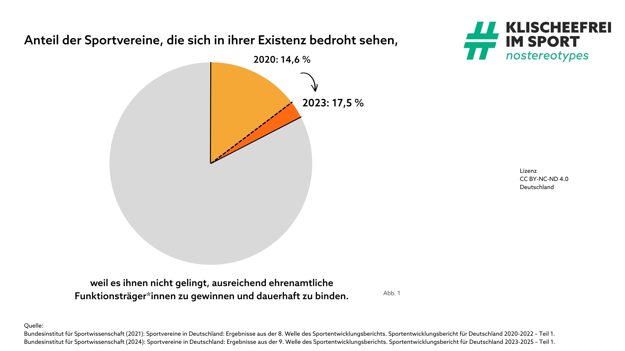 1 Bundesinstitut für Sportwissenschaft (2024): Sportvereine in Deutschland: Ergebnisse aus der 9. Welle des Sportentwicklungsberichts. Sportentwicklungsbericht für Deutschland 2023-2025 – Teil 1, unter: https://cdn.dosb.de/Relaunch_2024/Ehrenamt/Downloads/SEB-Bundesbericht-2023-2025-web.pdf